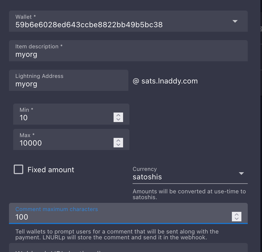 New or Existing LN addresses – If you receiving payment is going to someone outside of your organization you can use this, or create a new one within the LNURLp extension, that uses your LNBits domain name.