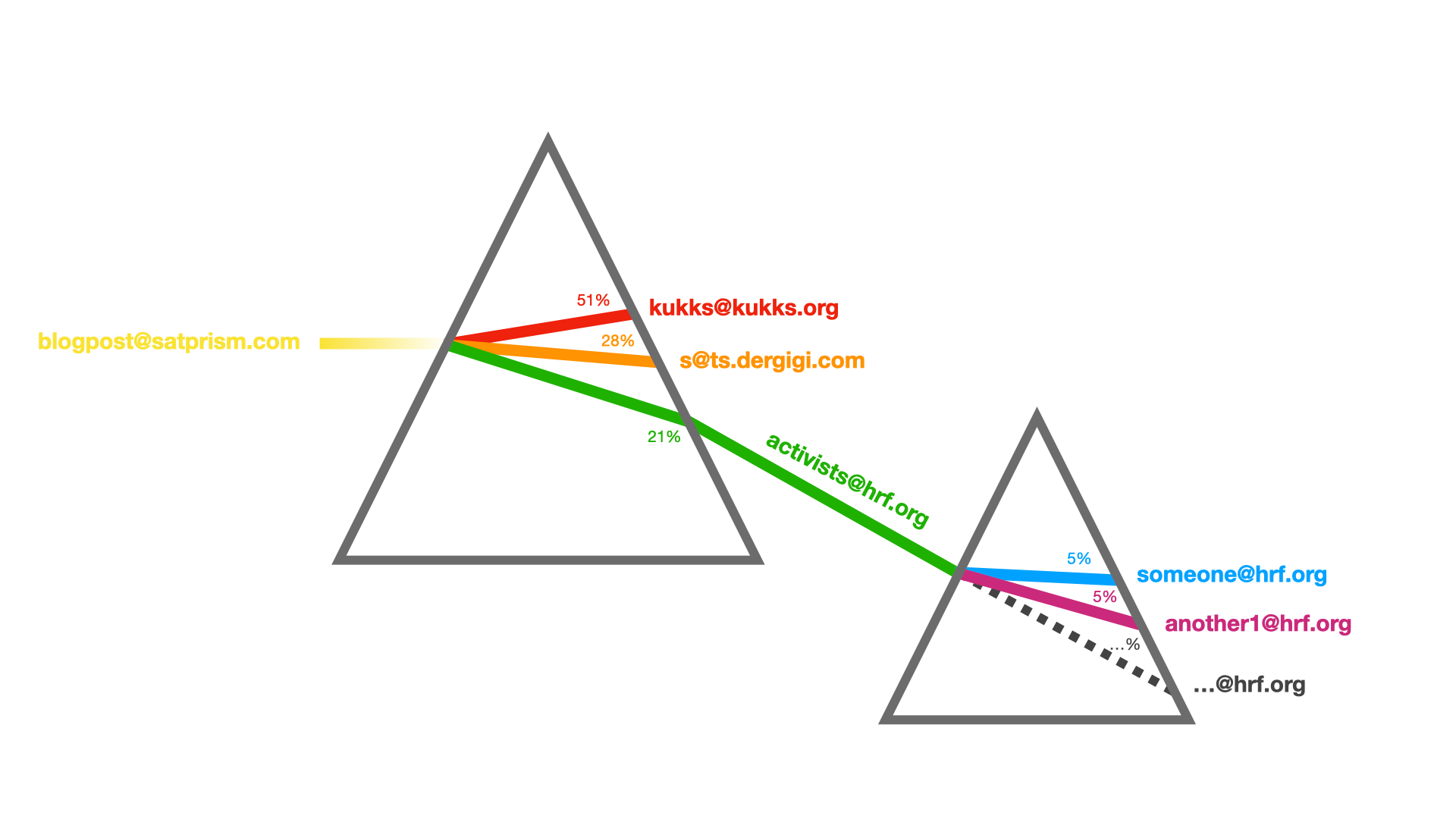 A Lightning Prism is a construct that allows for “lightning address value split workflows,” to quote the originator, Mr. Kukks.